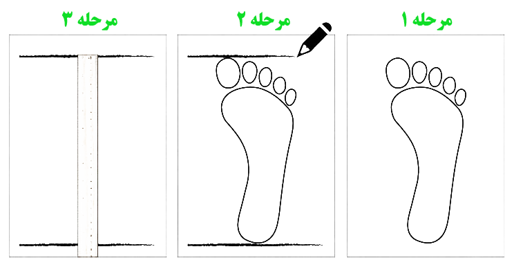مرحله 2: نقاط تماس بلندترین انگشت و پاشنه پا را با سطح، علامت گذاری نمایید.